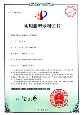 潤滑油多功能濾油機專利                                絕緣油再生型濾油機專利